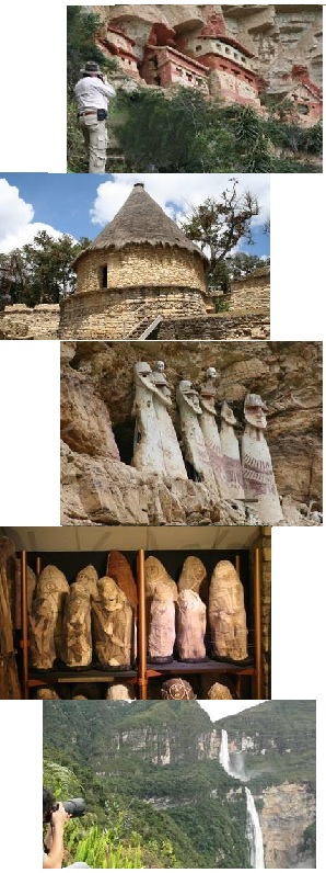 Toda Chachapoyas 4 Días / 3 Noches Kuelap / City Tour / Gocta / Revash / Museo De Leymebamba Desde: USD. $. 203.00 Itinerario Del Viaje: DIA 01: CHACHAPOYAS (City Tour) Llegada a Chachapoyas. Recepción y traslado al hotel elegido. Alojamiento. Por la tarde Salida al pueblo de Huancas. En el trayecto haremos una breve parada en el Mirador de Luya Urco para tomar fotografías. Llegada a Huancas, donde podremos observar la elaboración de las típicas cerámicas; luego continuaremos visitando el hermosos Cañón del río Sonche, visitaremos el Taller de Artesanía La Cusana. Retorno a la ciudad de Chachapoyas, conoceremos el Mercado Central, degustaremos el típico pan chachapoyano, luego visitaremos la Plaza de Armas, Casona las dos rosas, el Pozo de Yana-yacu (fuente del amor), Monumento a los triunfadores de Higos Urco. Pernocte. DIA 02: CHACHAPOYAS. (Catarata Gocta) Desayuno. A hora indicada salida al Pueblo de Cocachimba, distante a solo una 1 hora desde Chachapoyas. Llegada a Cocachimba, Luego de unas instrucciones iniciaremos una caminata por angostos caminos rodeados de gran vegetación así como fauna propios del bosque nuboso, y con un poco de suerte podremos observar al famoso Gallito de las Rocas en su hábitat natural. Llegada a la impresionante Catarata GOCTA, la tercera más alta del Mundo, con una altura de 771 metros (tiempo aprox. de caminata dos horas de ida y dos horas de retorno) Retorno al pueblo de Cocachimba. Retorno a la ciudad de Chachapoyas. Pernocte. DIA 03: CHACHAPOYAS. (Mausoleos de Revash / Museo de Leymebamba) Desayuno Salida al Puente Santo Tomás. Desde allí iniciaremos una caminata de ascenso (aprox 01 hora) hasta el sitio funerario pre inca conocido como Los Mausoleos de Revash, sepulcros colectivos de 1 y 2 pisos, finamente pintados, con techos de caída a dos aguas; éstos fueron construidos en grutas excavadas en la pared rocosa, ubicados en acantilados inaccesibles. Por la tarde visita a la localidad de Leymebamba; ahí conoceremos el Museo del Centro Mallqui, que alberga una valiosa colección arqueológica de más de 200 momias y sus ofrendas funerarias, recuperadas en 1997 de la Laguna de los Cóndores. Retorno a Chachapoyas. Pernocte. DIA 04: CHACHAPOYAS. (Fortaleza de Kuelap) Desayuno. Salida a la Fortaleza de Kuelap, en el trayecto podremos observar el complejo arqueológico de Macro, el que se ubica en la pendiente derecha del río Utcubamba; desde ahí iniciaremos nuestro ascenso por hermosos valles y pintorescos pueblos como Nuevo Tingo, Choctamal, María hasta llegar a La Malca desde donde iniciaremos una caminata de 10 mts hasta llegar a la Fortaleza de Kuelap, ubicada sobre los 3,000 msnm. Visita guiada por el interior, conociendo el Pueblo Alto y Pueblo Bajo, sus recintos ceremoniales, el torreón, el templo mayor y sus casas habitaciones circulares y rectangulares, etc. Almuerzo. Retorno a Chachapoyas. A hora oportuna, traslado al Terminal de buses. FIN DE LOS SERVICIOS. EL PROGRAMA INCLUYE:
